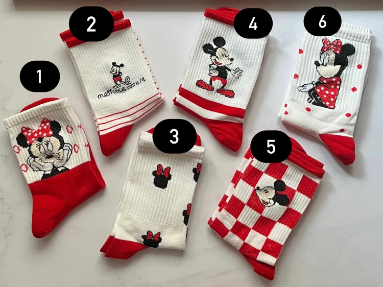 جوراب نخی نیم ساق طرح میکی و مینی