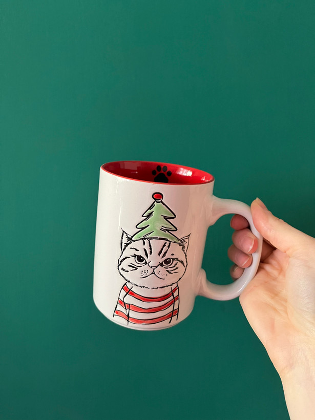 ماگ سرامیکی برجسته طرح پیشی کریسمسی