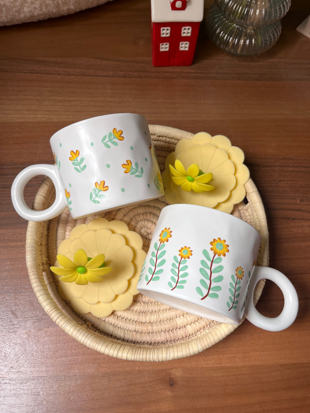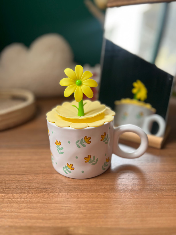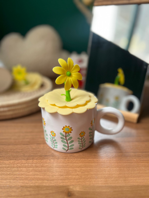 ماگ سرامیکی درب سیلیکونی طرح آفتابگردون
