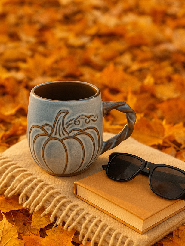 ماگ سرامیکی برجسته کدو دسته پیچی طوسی