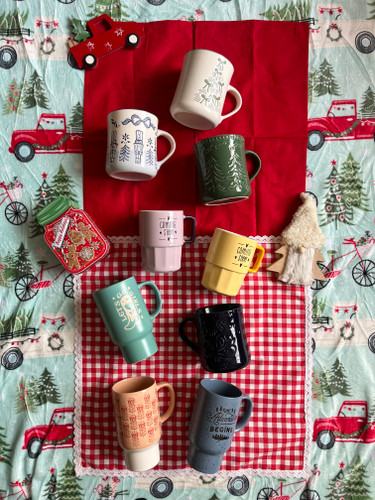 ماگ سرامیکی کریسمسی پیشی قرمز و کاج سبز