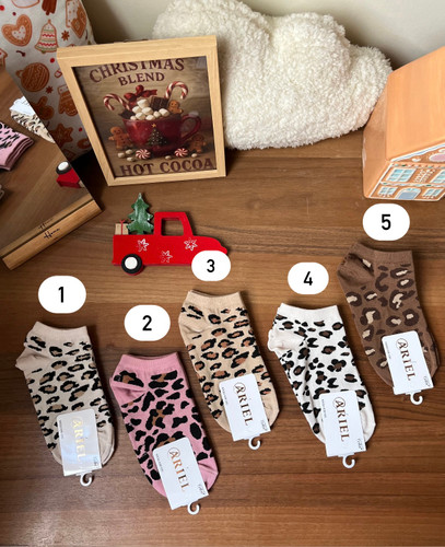 جوراب ساق بلند طرح گل کرم و قهوه ای